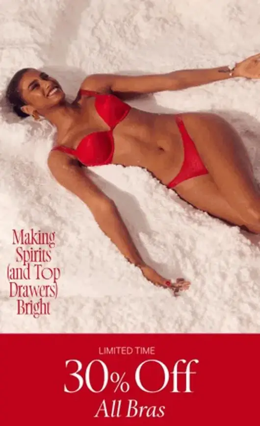Get it quick! Shop in store and get 30% off all bras.