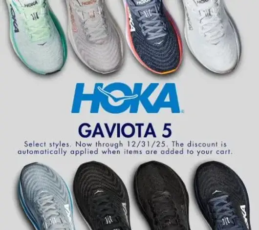 Save an additional 20% off the HOKA - Gaviota 5. Selection varies by location. Good on select styles.