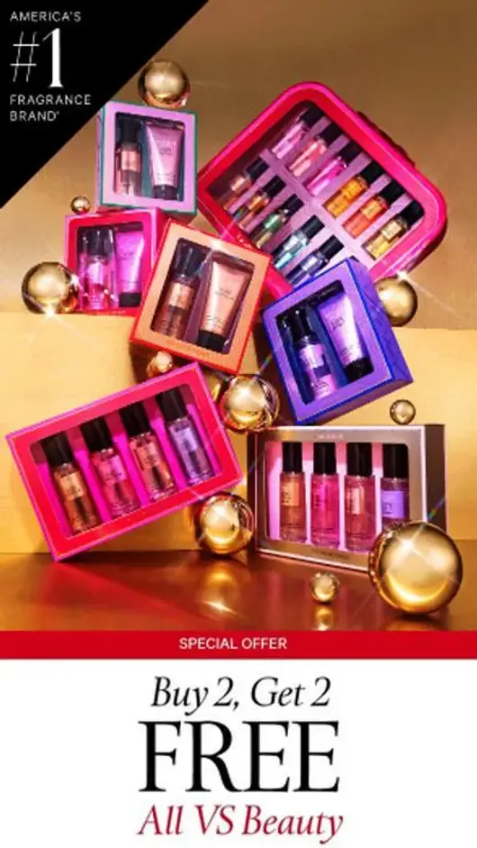 Don't miss out! Shop in store and enjoy buy 2, get 2 free all VS beauty.